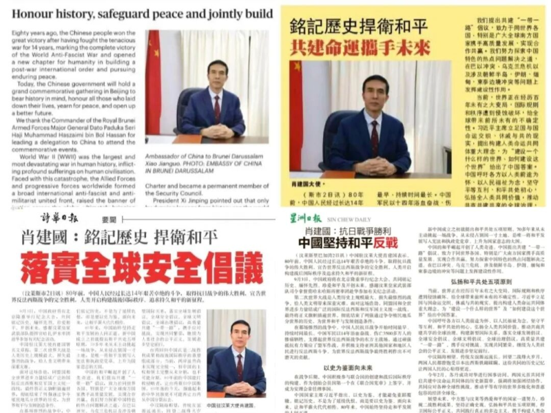 中国驻文莱大使肖建国在文媒体发表署名文章《铭记历史 捍卫和平 携手构建人类命运共同体》